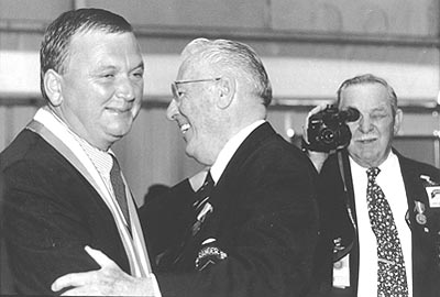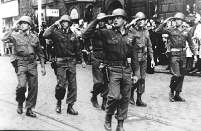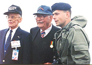 Young Ranger marvels at the mettle and pluck of his illustrious forebears. left-Donald Mentzer, medic, landed at Omaha Beach; center-Charles Korb, medic, landed at Pointe du Hoc. Says Frank South, fellow medic who landed with Charlie at the Pointe du Hoc, "He was one of the braver chaps I knew. As Decatur said of Lawrence, 'he had no more bend in him than a mainmast'."