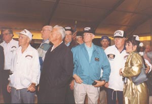 4 P.M. Friday, June 3. After an 8 hour crossing of the Atlantic, a 3 hour bus ride to Caen, and a 2 hour visit of the Memorial Museum, the WWII Ranger vets are still standing and ready to go.